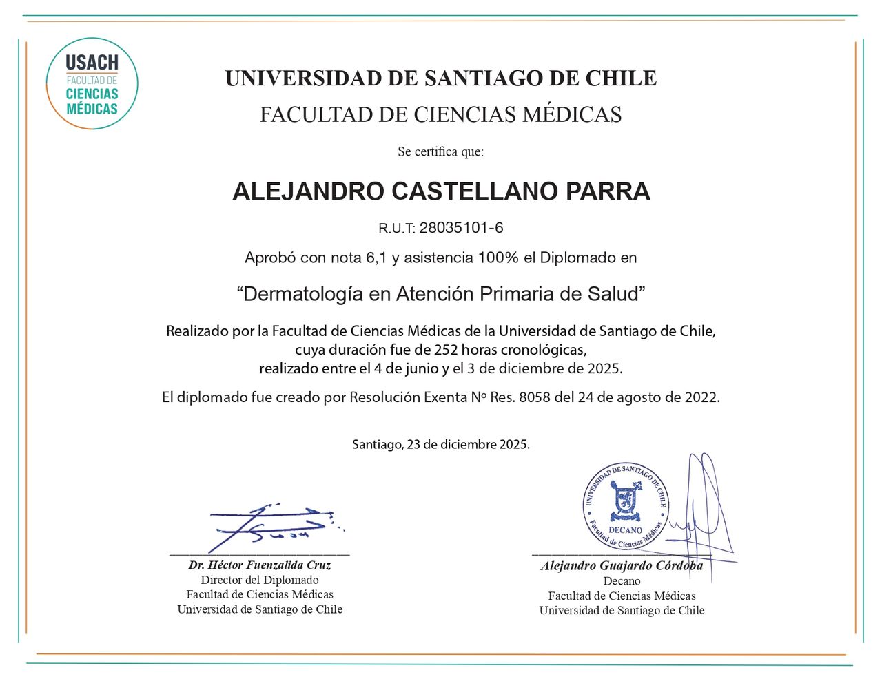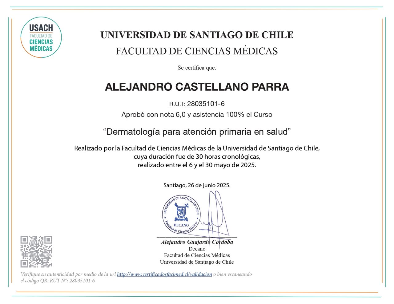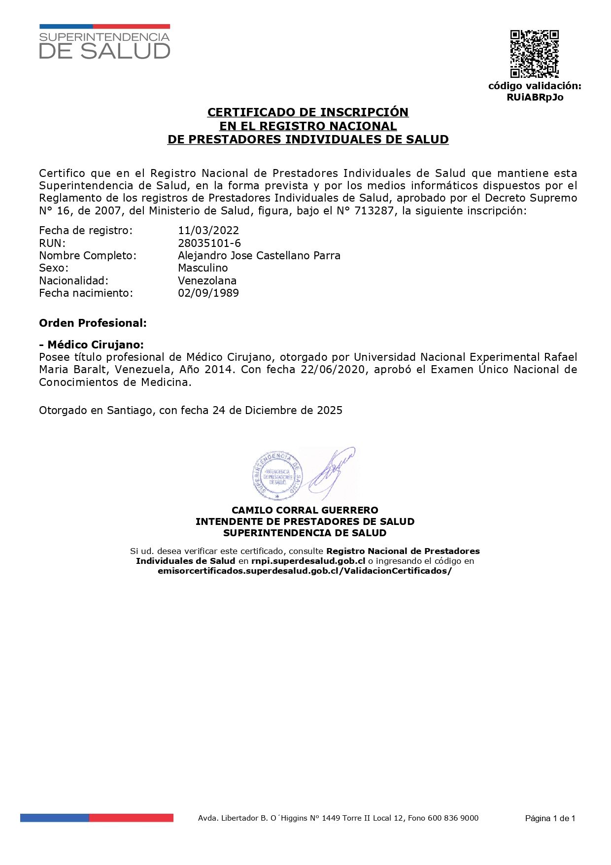Hola, soy el Dr. Alejandro Castellano Parra. Médico general revalidado en Chile a través del Eunacom y con inscripcion en la Superintendencia de Salud Nro. 713287.